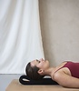 Lege das Band auf den Boden und lasse dich mit der Wirbelsäule in einer Linie mit dem Band nach hinten sinken. Der untere Rücken bleibt auf dem Boden, nur der obere Rücken wird über das Band gelegt. Die Schulterblätter fallen jeweils zu einer Seite des Yoga Strips und öffnen die Brustmuskulatur. Lasse deine Atmung mit der Entspannung mitgehen, indem du sanft und tief durch die Nase ein- und durch den Mund ausatmest. Du kannst zehn Minuten lang auf dem Band bleiben, damit die Muskeln die Möglichkeit haben, in eine Ruhephase einzutreten.