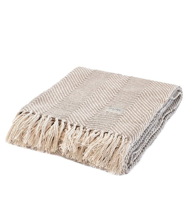 Mit dieser strapazierfähigen Yogadecke von Pure bleibst du stilvoll warm. Die erdige Taupe-Farbe vermittelt sofort ein Gefühl der Ruhe, und das Fischgrätenmuster sorgt für einen besonders luxuriösen Touch. Herrlcih sowohl für Yoga- und Meditationssitzung.