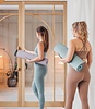 Nachdem Sie die Matte vollständig gereinigt haben, lassen Sie sie hängend oder liegend vollständig trocknen. Nach dem Trocknen können Sie die Matte lagern und mit Yogamattengummis sicher zusammenhalten.